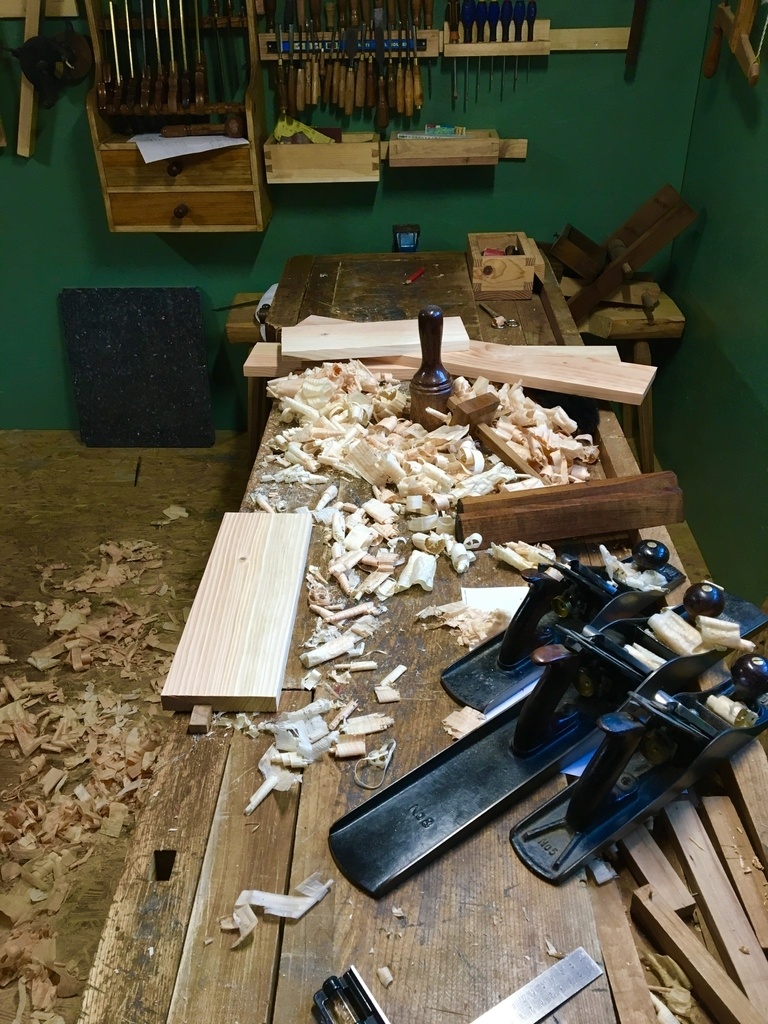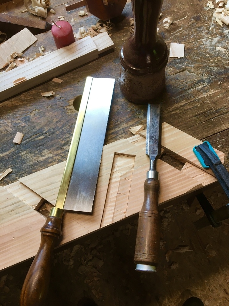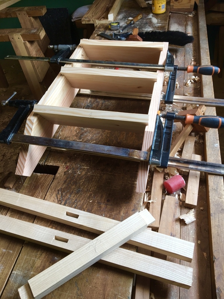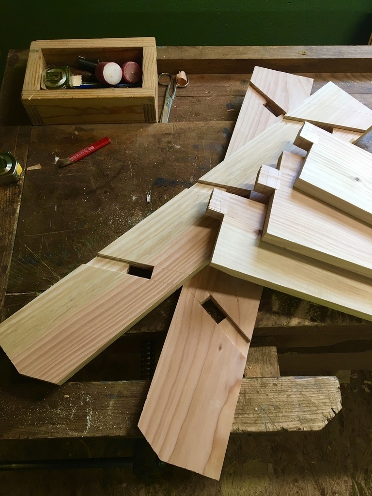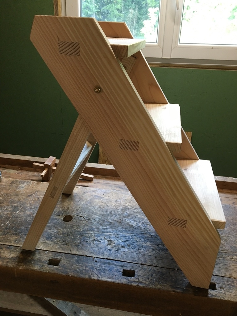 Un petit escabeau qui peut servir aussi de siège d'appoint. Réalisé en douglas.