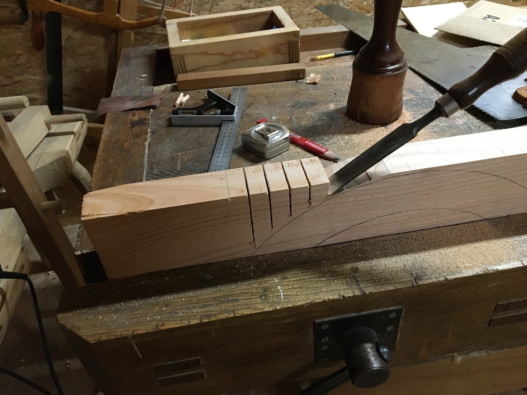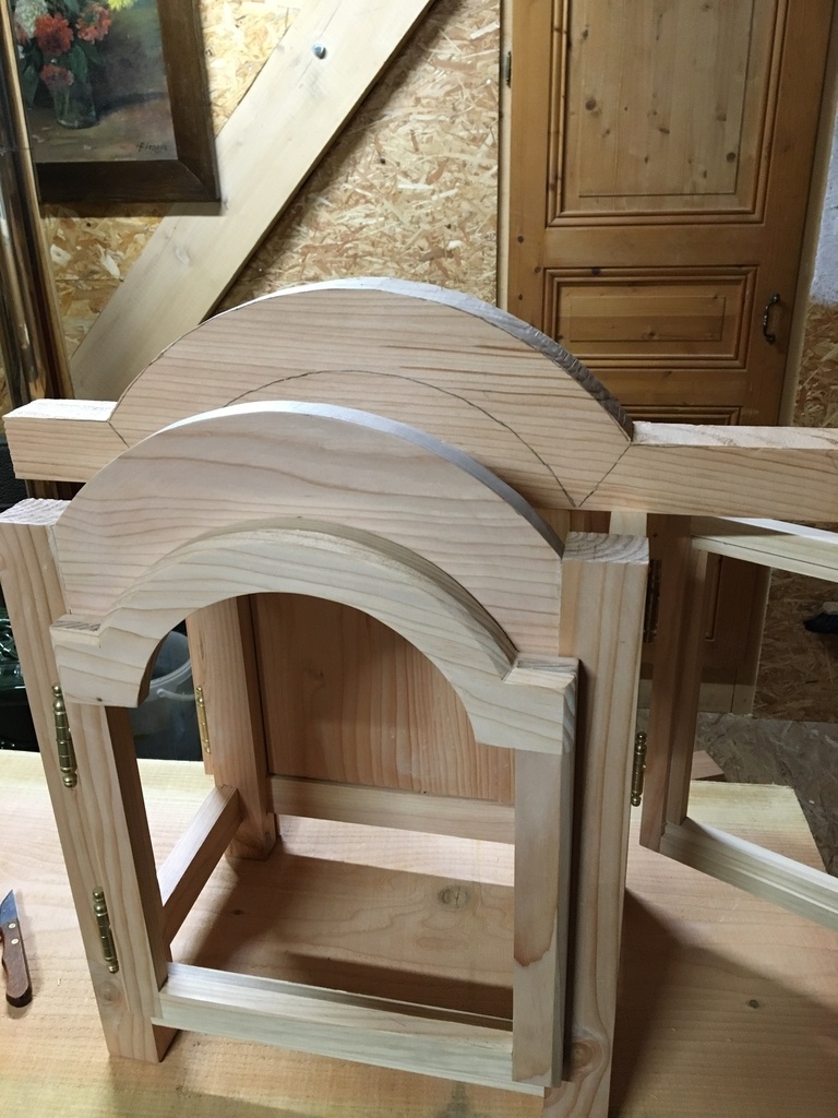 Ensuite ce sont les courbes et corniches, façonnées à la scie et gouges.